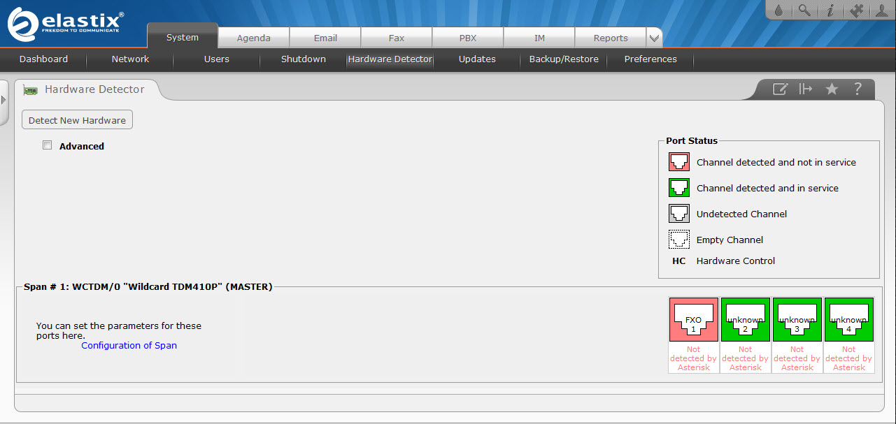 - ไปที่ web interface ของ Elastix คลิก "Detect New Hardware"