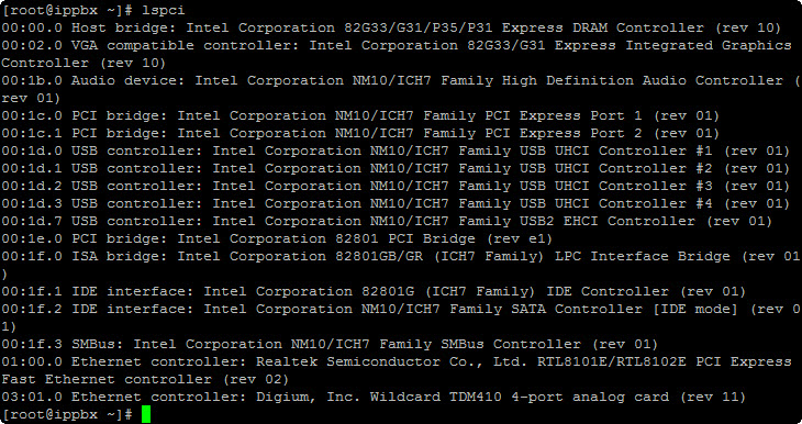- ใช้คำสั่ง dahdi_hardware จะเห็น driver = wctdm24xxp (เครื่องหมายบวกแสดงว่า load drive ถูกต้องสมบูรณ์)